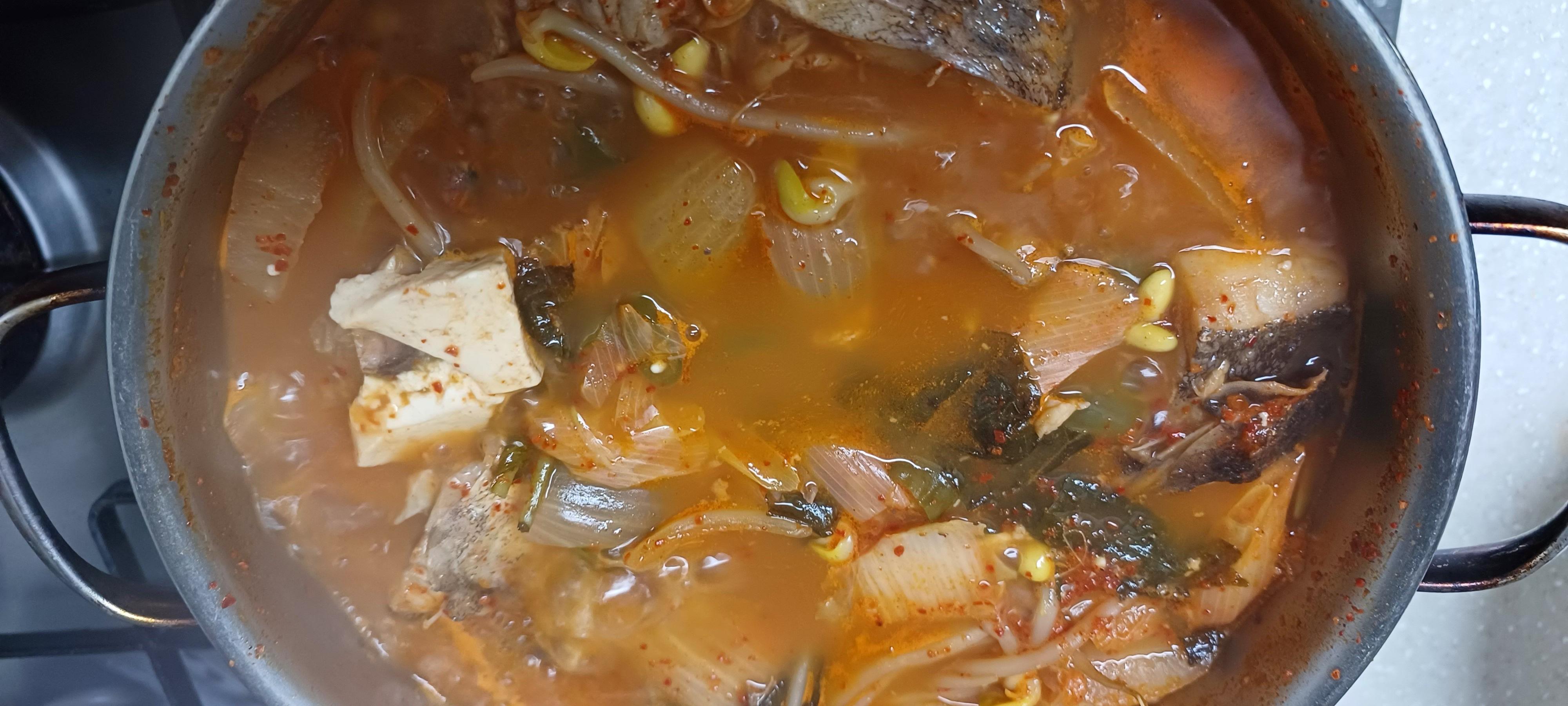 오랫동안 끓여서 국물이 맛있게 우러난 시원 칼칼한 동태찌개가 맛있게 완성되었습니다.